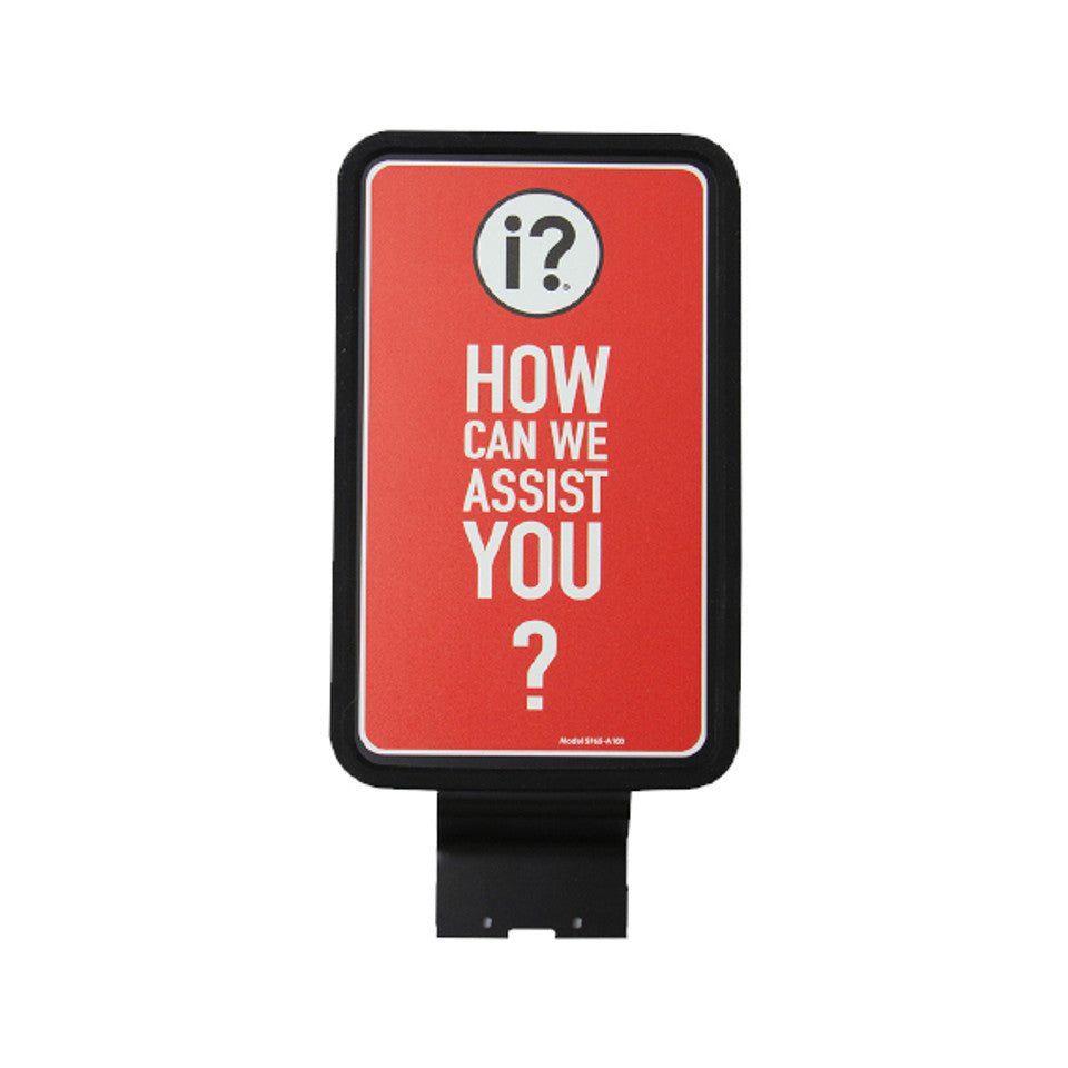 Improve visibility and customer engagement with the Motorola CB403C Sign Panel | SP65-A100, a professional-grade signage solution designed to enhance service interactions in high-traffic environments. Featuring a bold red background, crisp white text, and a universally recognized information icon, this panel clearly communicates the message: “HOW CAN WE ASSIST YOU?” Built with a durable black frame and high-contrast design, it ensures maximum readability and long-lasting performance in retail stores, airports, hospitals, and other public-facing spaces. Whether mounted near call buttons or service counters, the CB403C helps guide customers to assistance points, improving satisfaction and operational flow. Compatible with Motorola’s Curve ecosystem, this sign panel is a simple yet powerful tool for elevating your customer service experience.