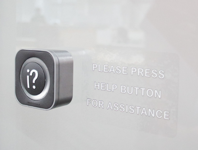 Disclaimer: The call button shown in the image is for demonstration purposes only and is not included with the purchase of the CB401 Static Window Cling.